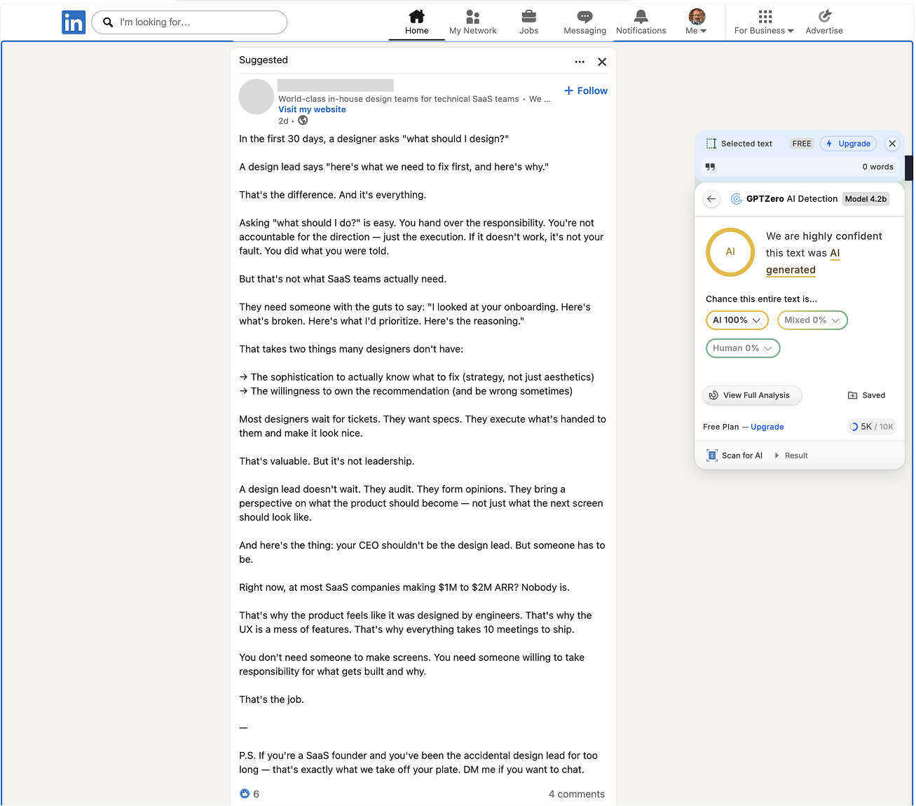 This week, I noticed something odd about certain LinkedIn posts. I suspected they were written by AI, but now I know. How?